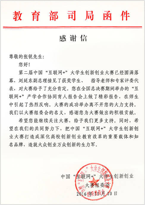 2018年,28圈连续多年为中国国际互联网+大学生创新创业大赛做出积极贡献,获教育部来函致谢。